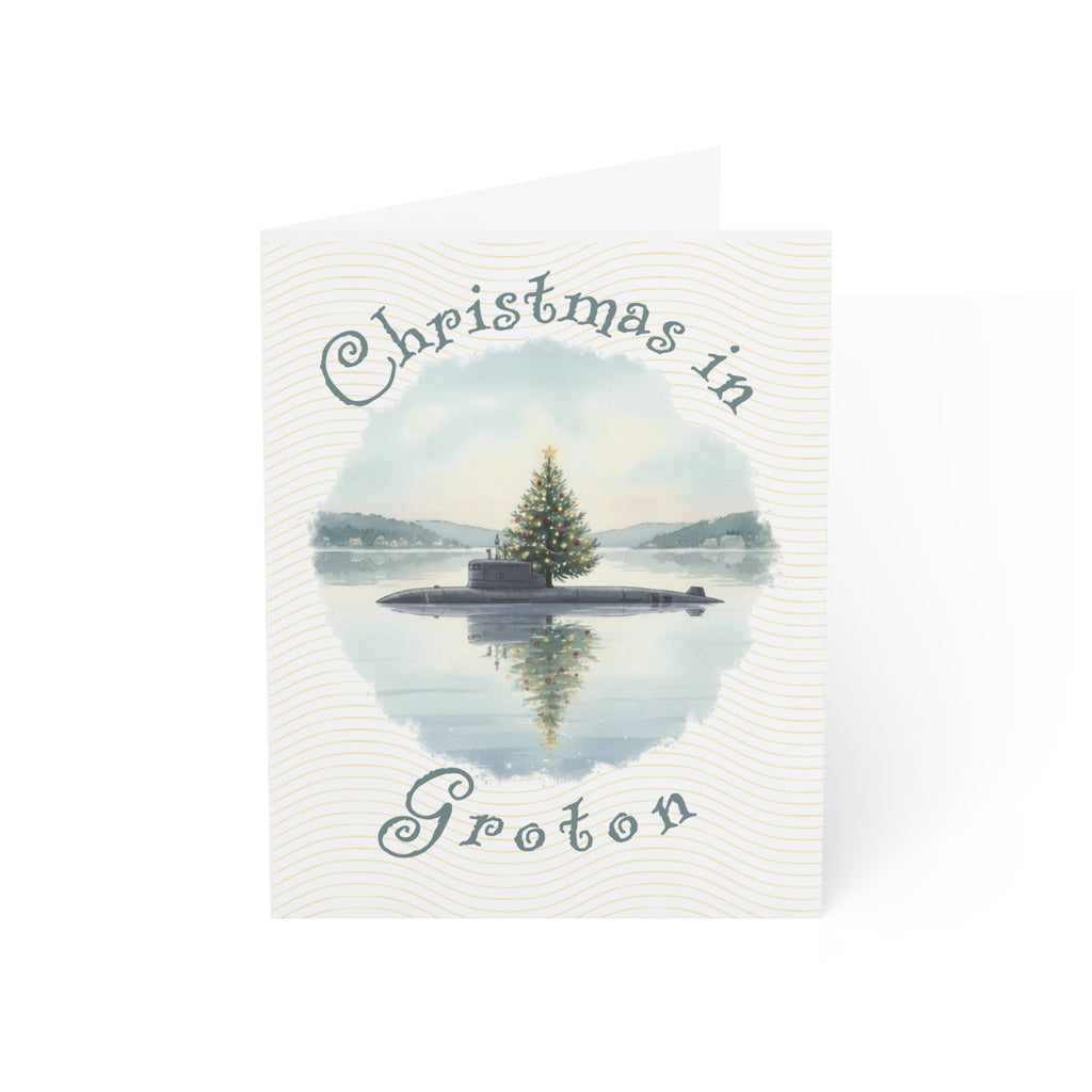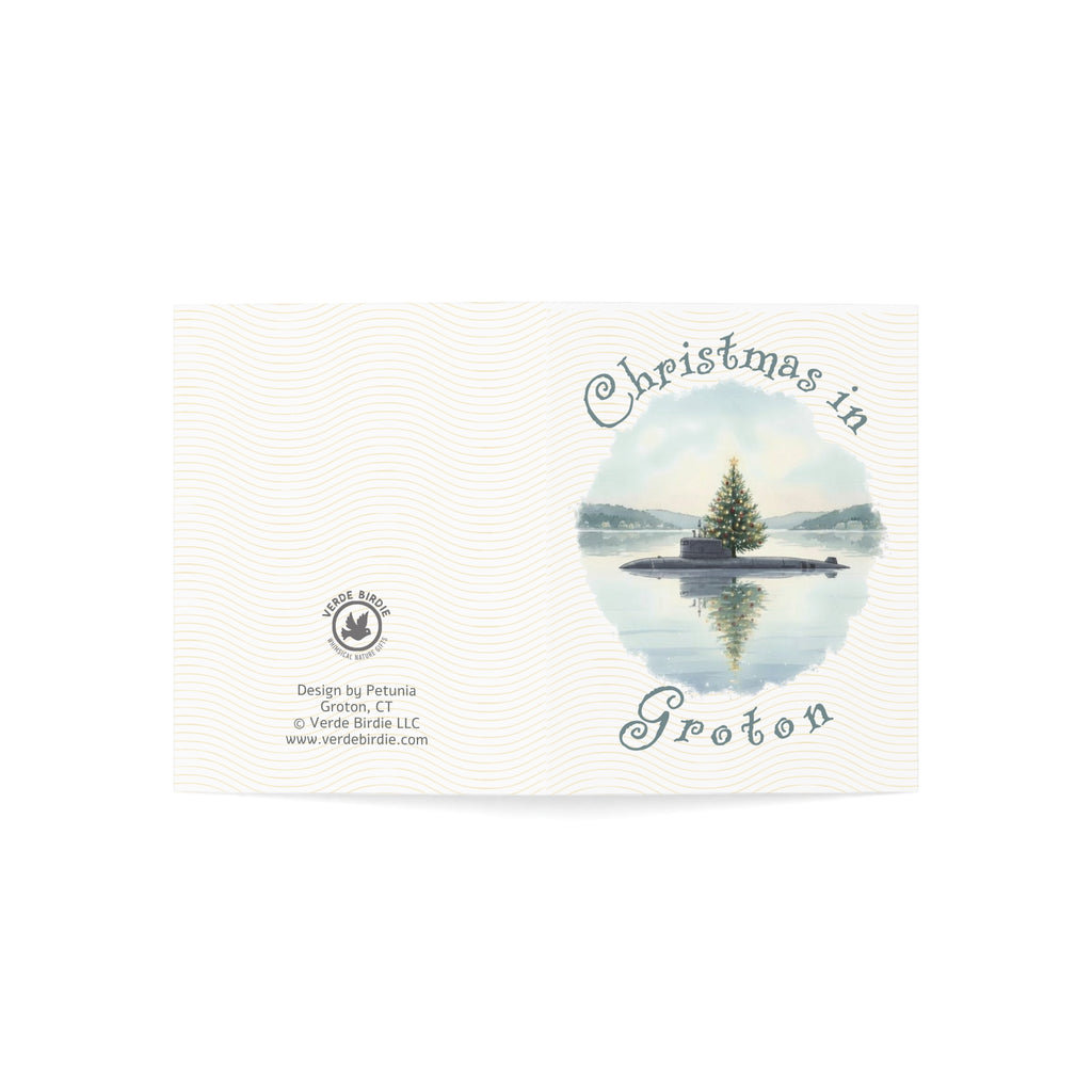 Christmas in Groton Greeting Card – Submarine with Xmas Tree Holiday Card (1/10/30/50 pcs) 4.25" x 5.5"