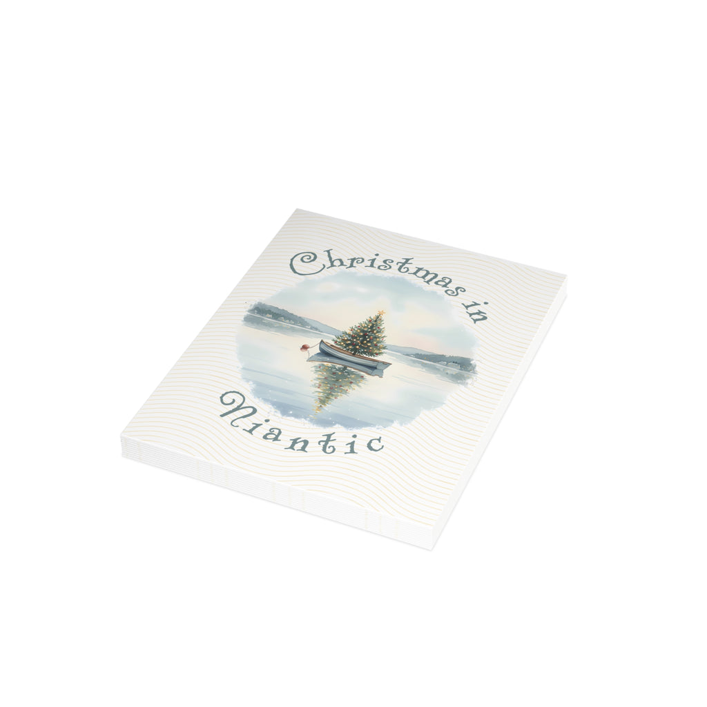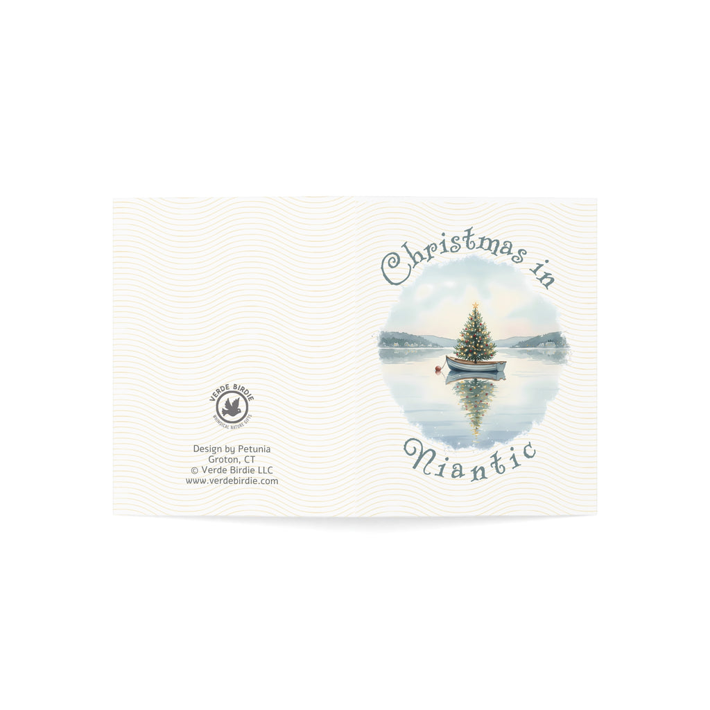Christmas in Niantic Greeting Card – Dingy Boat with Xmas Tree Holiday Card (1/10/30/50 pcs) 4.25" x 5.5"