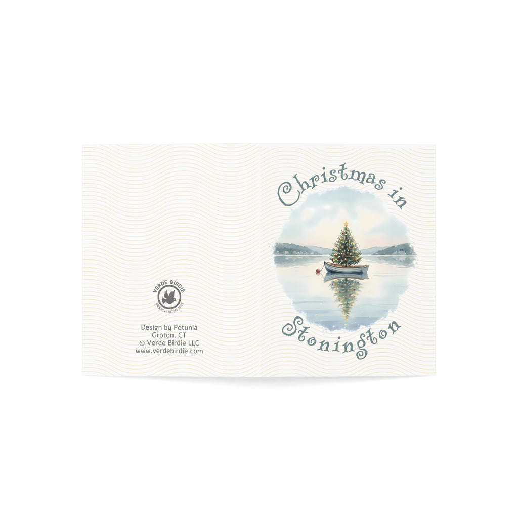 Christmas in Stonington Greeting Card – Dingy Boat with Xmas Tree Holiday Card (1/10/30/50 pcs) 4.25" x 5.5"