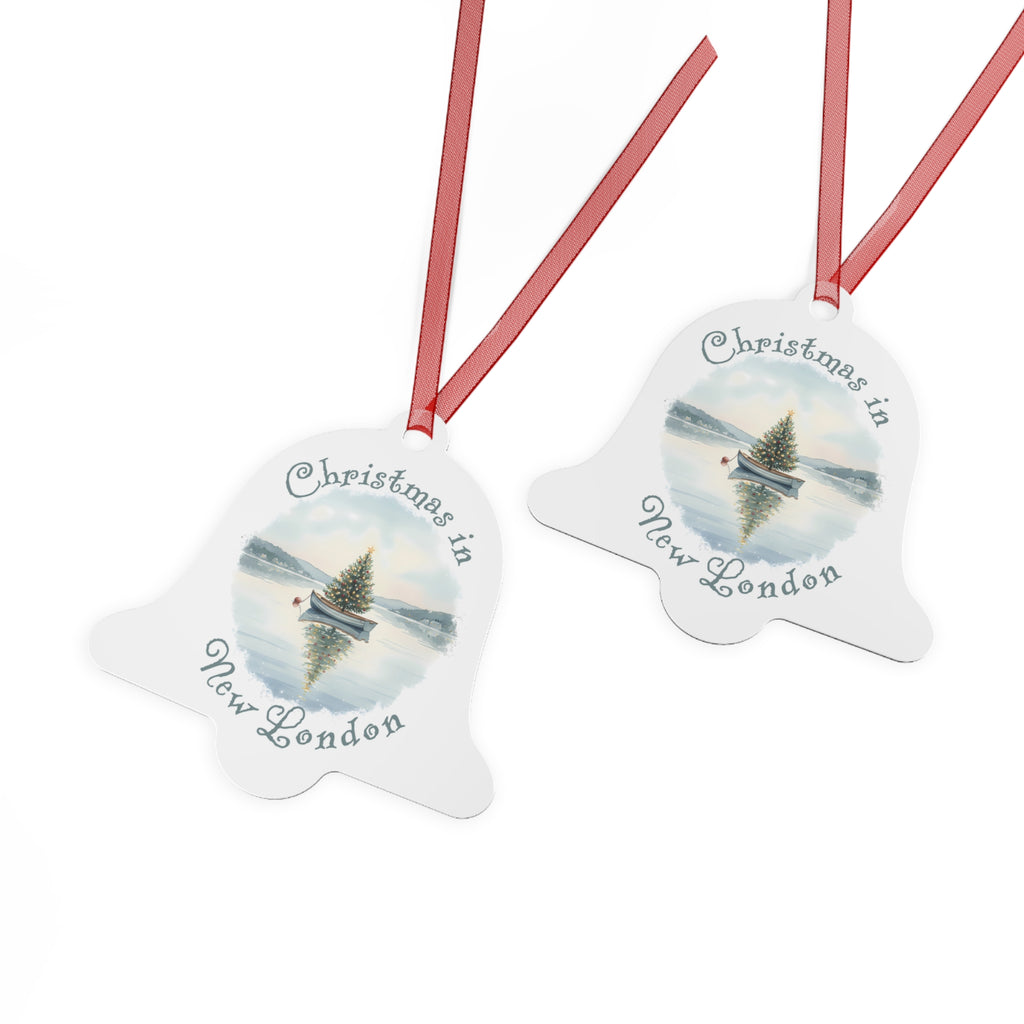 Christmas in New London, CT Metal Ornament - Dinghy Boat with Xmas Tree in Harbor, Local's Keepsake Gift