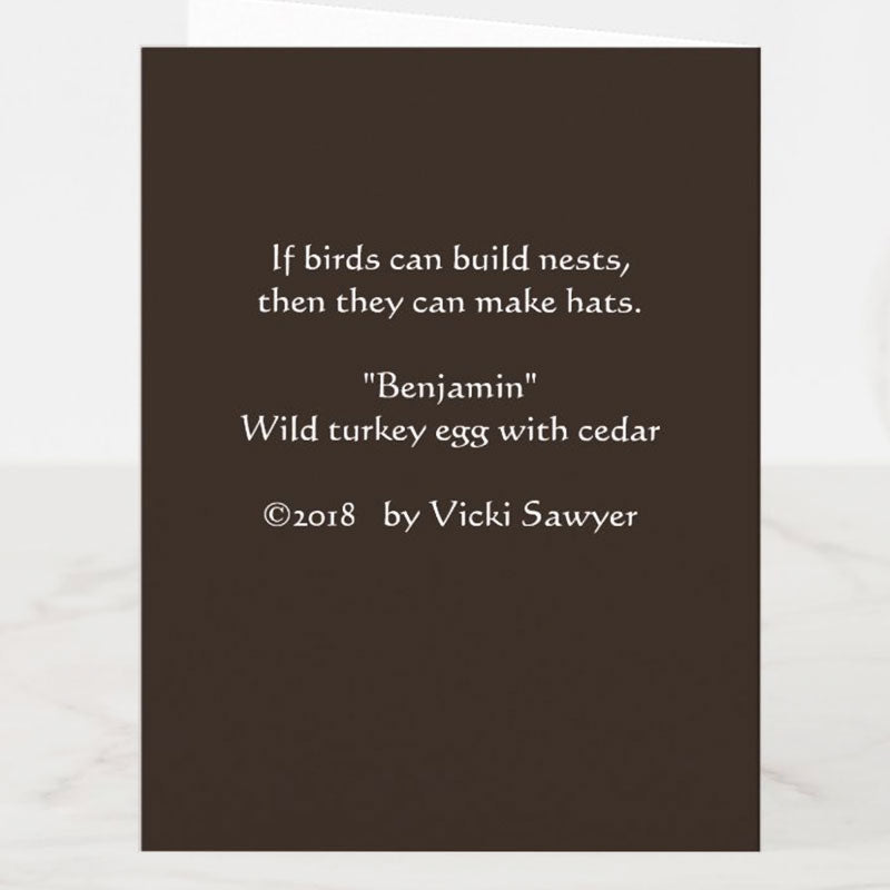 Wild turkey egg hatching greeting card. New baby card.